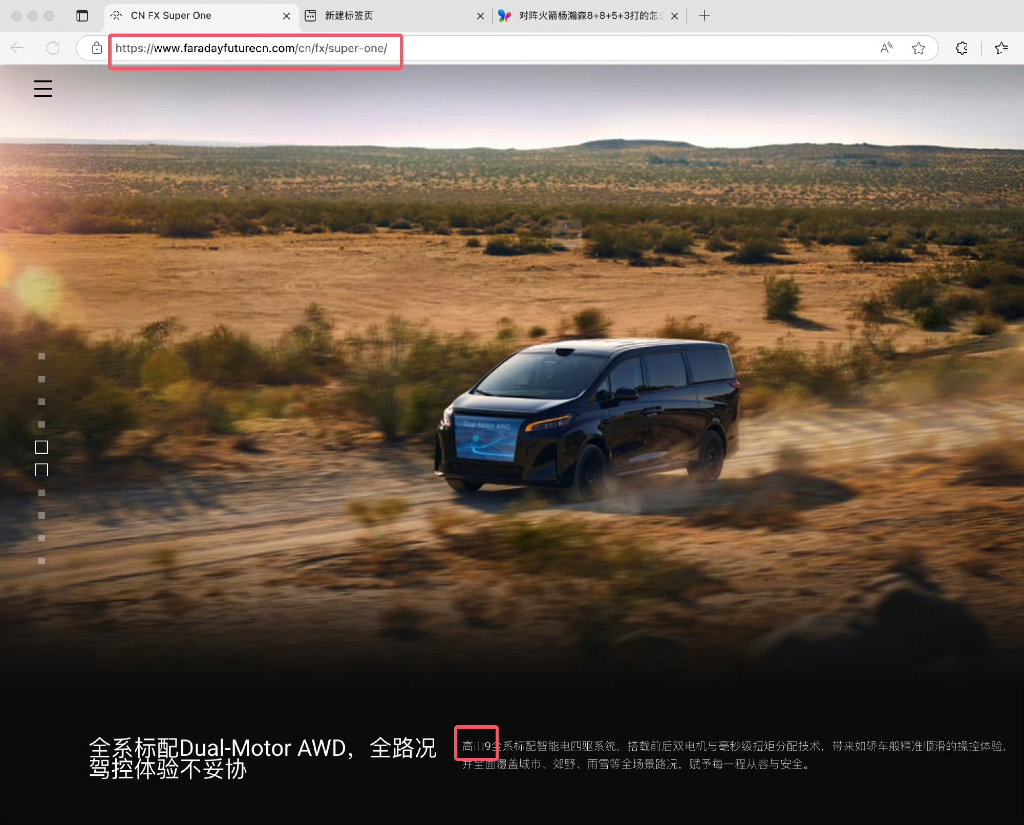 但据网友 / 博主反馈,该车改装自长城魏牌高山 9。同时法拉第未来官网曾显示有原型车相关介绍,其中写明高山 9(截至发稿,相关描述已删除)。