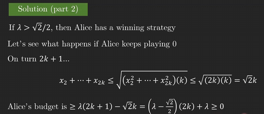 当 λ > c 时,Alice 获胜。