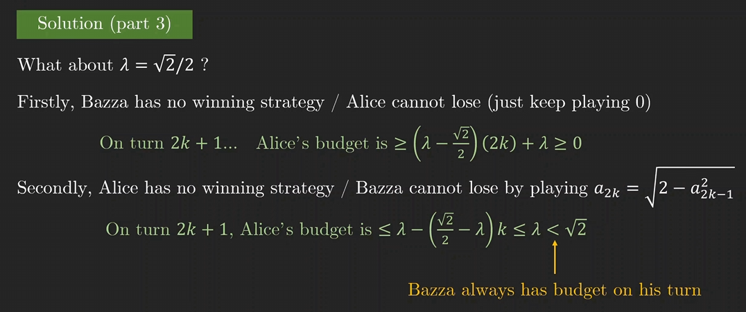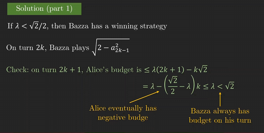 当 λ < c(c = 1/√2)时,Bazza 获胜。