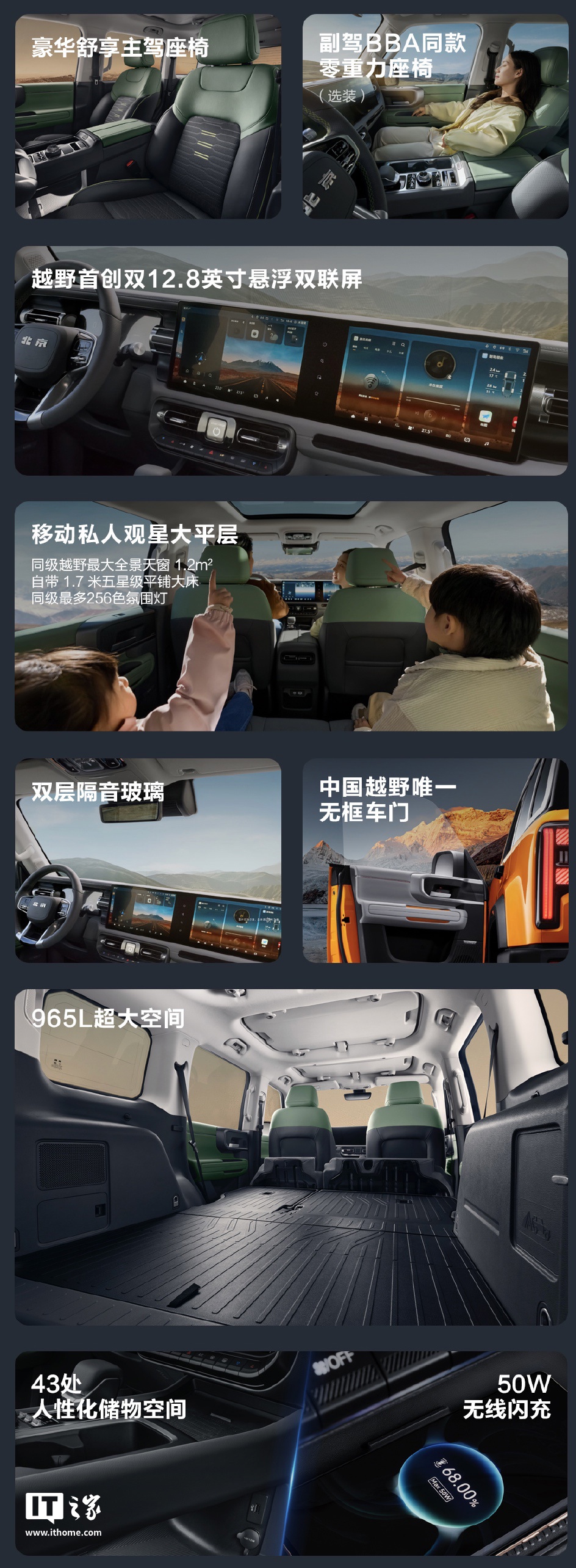 座舱方面,系列车型全系标配 10.25 英寸液晶屏、12.8 英寸中控屏、12.8 英寸副驾屏、9 英寸流媒体后视镜,车机配备高通骁龙 8155 芯片,支持 AI 语音情景式对话,提供 10 扬声器音响 + 独立功放。