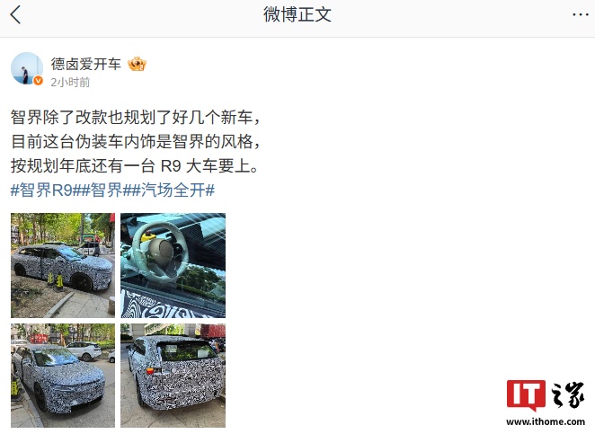 目前该车暂未有更多信息公布 / 泄露,有博主透露,智界除了改款车外还规划了几个新车,同时年底还有一台 R9 大车要上。