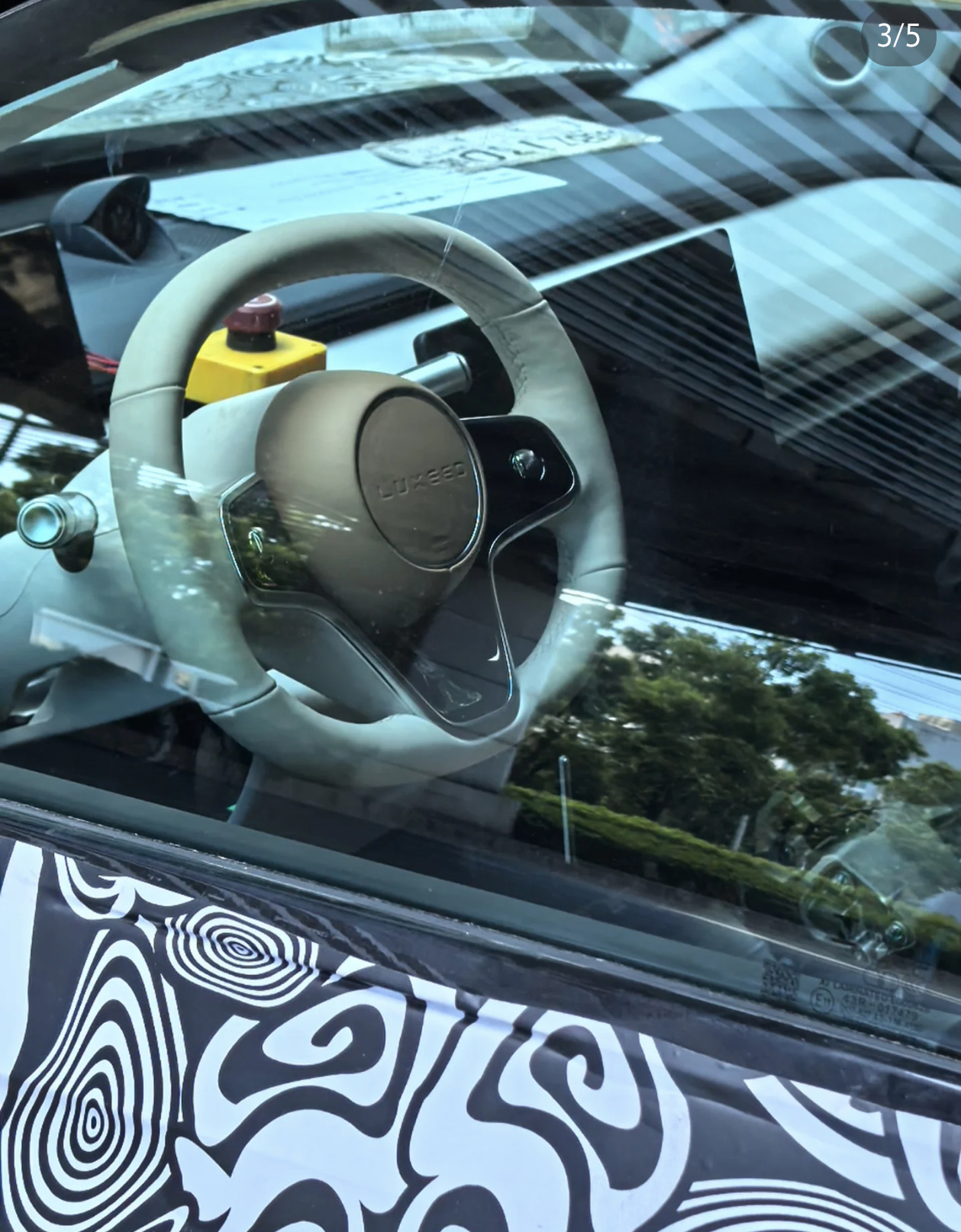 另外图片显示,智界新款 SUV 沿用家族式设计风格,配备“LUXEED”字样方向盘(未上车标,预计是因为该车为工程车)、怀档、星环散射体、悬浮中控屏、仪表屏。