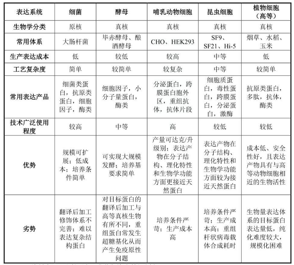 图:三大重组蛋白药物制备表达系统,来源:招股书