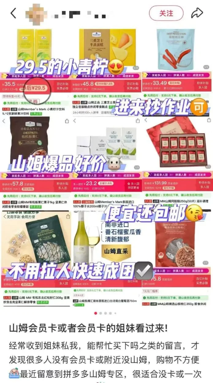 中文互联网传播被山姆玩得飞起,其爆款商品小青柠汁、瑞士卷、烤鸡、智利车厘子、谷饲牛排等通过小红书等平台病毒式传播,“山姆测评”“穷鬼套餐”成了流量密码,甚至催生出了职业的山姆代购。