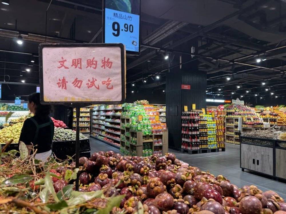 九块九一斤的山竹、20多一斤的榴莲……这家“胖东来”调改超市倒是把县城的高端水果价格打了下来。在这之前,县城人想买高端水果,习惯去一家叫"绿叶"的连锁水果店,车厘子常年卖到七八十一斤,即使不买这种水果,在绿叶消费,随随便便也能花到一百多,让习惯拼多多网购水果的媳妇,很是心疼。
