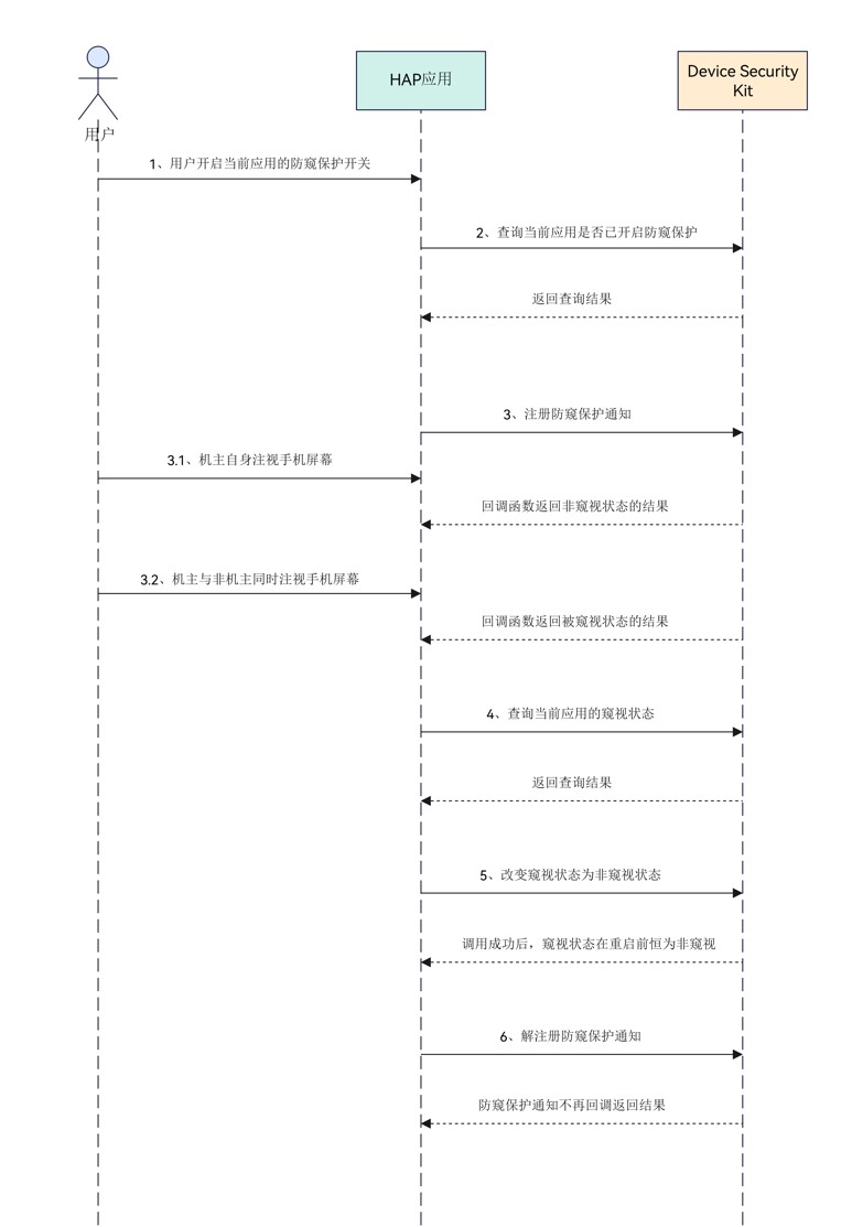 5. 防窥保护功能使用智能判断,通过传感器判断您周边环境给您风险提醒。判断因素包括人脸距离设备是否在一定的范围内、人脸是否有遮挡、周围环境是否有充足的光线。当距离较近或较远、人脸被遮挡、周围环境较暗时,可能会引起识别误差,从而导致系统未提醒或者误提醒。如果您认为智能判断可能有误,您可以尝试调整位置和光线,重新使用人脸解锁手机等操作,并再次使用该功能帮助您防窥。