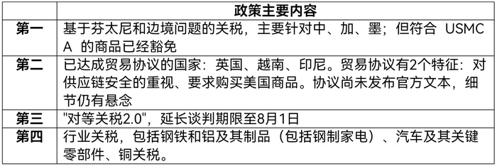 事实上,特朗普“征税函”公布后,主要资产价格波动并不大,美股甚至再创新高,长端美债利率小幅升至4.4%附近,美元指数小幅走高至97.7。从市场反应看,投资者对特朗普关税政策已经逐渐脱敏。