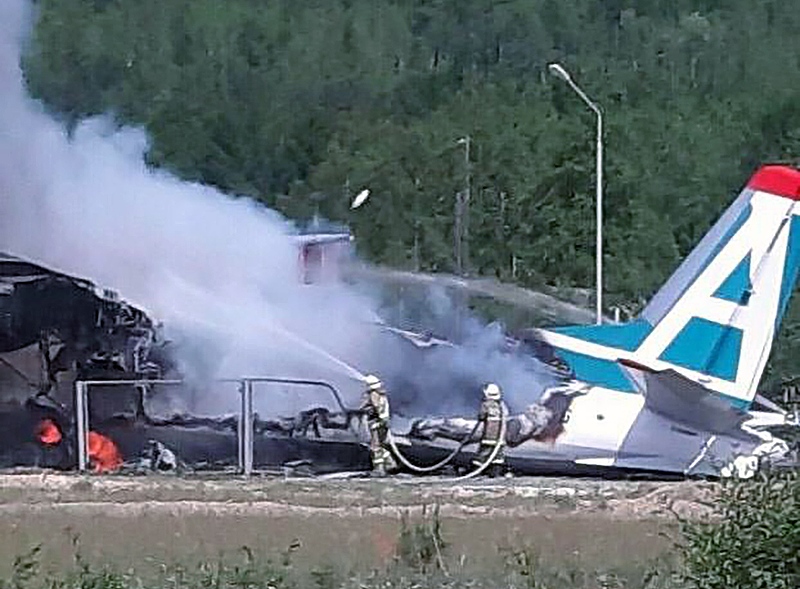 (资料图)2019年6月27日,俄罗斯一架安-24客机在位于俄罗斯东部的布里亚特共和国境内一机场紧急迫降。来源:视觉中国