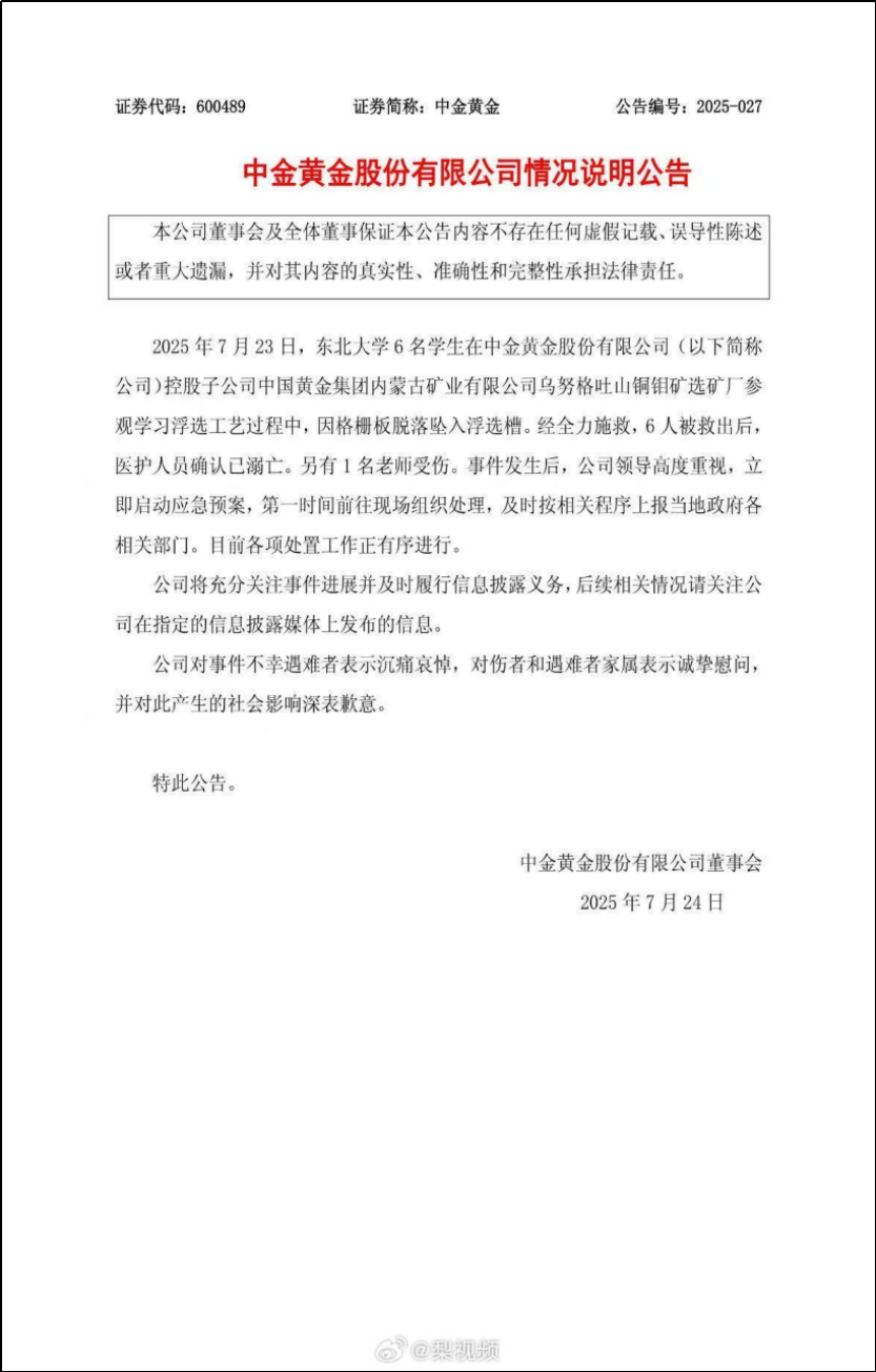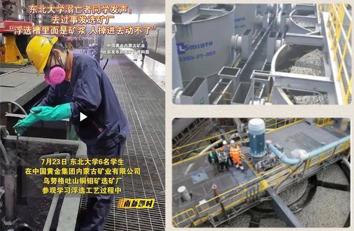 东北大学6名矿物加工工程专业的大三学生,去中金黄金的一个选矿厂实习参观时,他们站在浮选槽上方时,格栅板突然脱落,不幸坠入装有矿浆的浮选槽中溺亡。