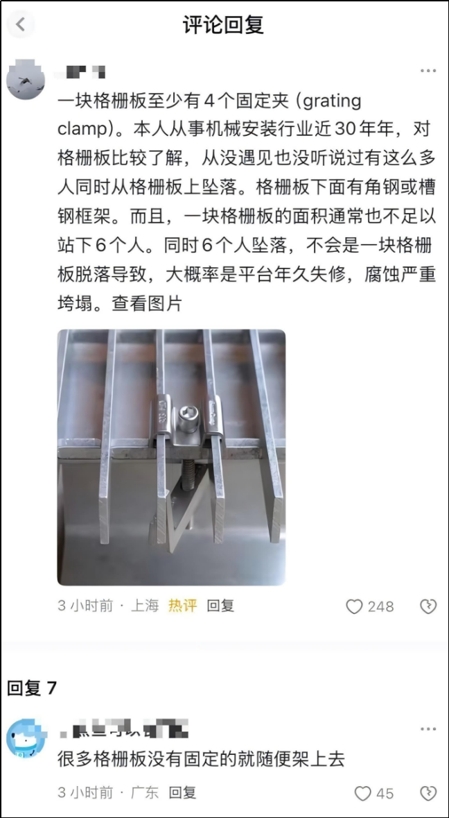 偏偏这次格栅板没保障到位,因为这个厂的安全隐患一直都有,据去过的学生爆料,7个人站在板上可能站不住。而事发六名学生加老师正好是7人。