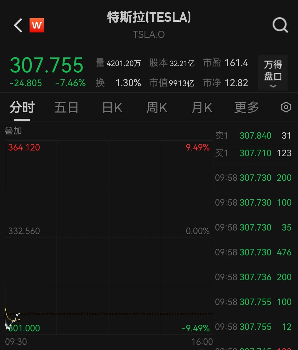 截至发稿,特斯拉美股跌超7%,此前一度跌超9%。