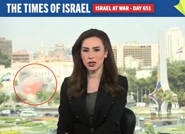 外媒拍下叙军事总部遭空袭(红圈处)画面。图/《以色列时报》