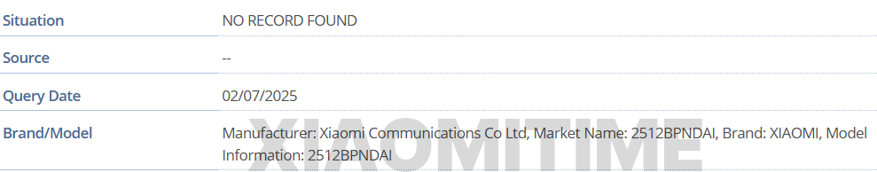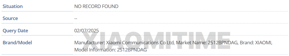 值得一提的是,前不久小米 16 Ultra 系列在 GSMA 数据库中现身。据外媒 xiaomitime 7 月 2 日报道,消息源发现了 2512BPNDAC、2512BPNDAI 和 2512BPNDG 三款型号,分别对应中国版、印度版和国际版,该媒体预估为小米 16 Ultra 机型。IT之家附上相关图片如下: