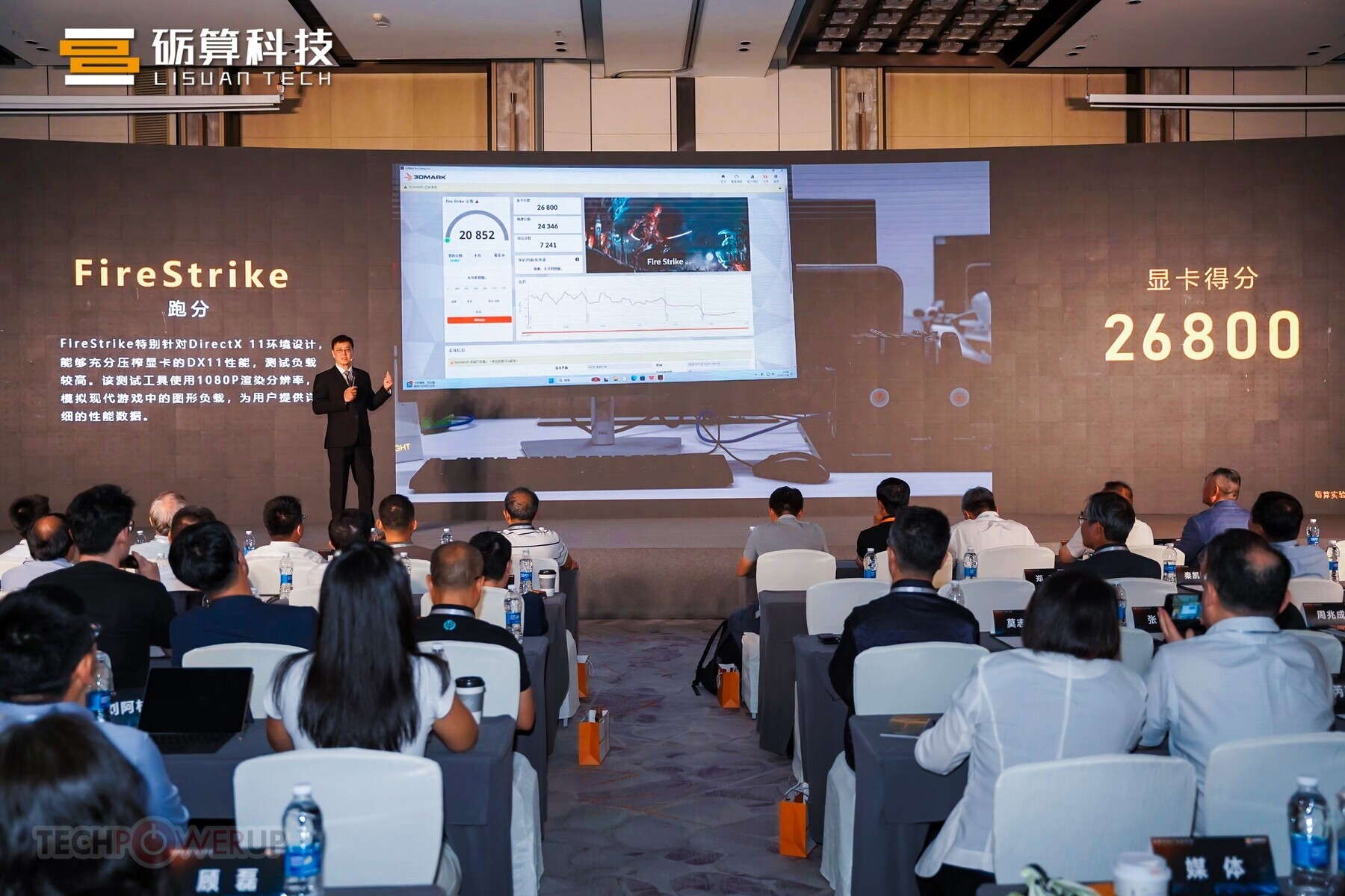 在发布会现场,砺算科技直接沿用了前天曝光的 Geekbench 跑分 ——OpenCL 得分 111290 分,比 RTX 4060 强了大约 10.16%。除此之外,它在 3DMark Fire Strike 测试中获得了 26,800 分的成绩,而 Steel Nomad 跑分 2256 分。