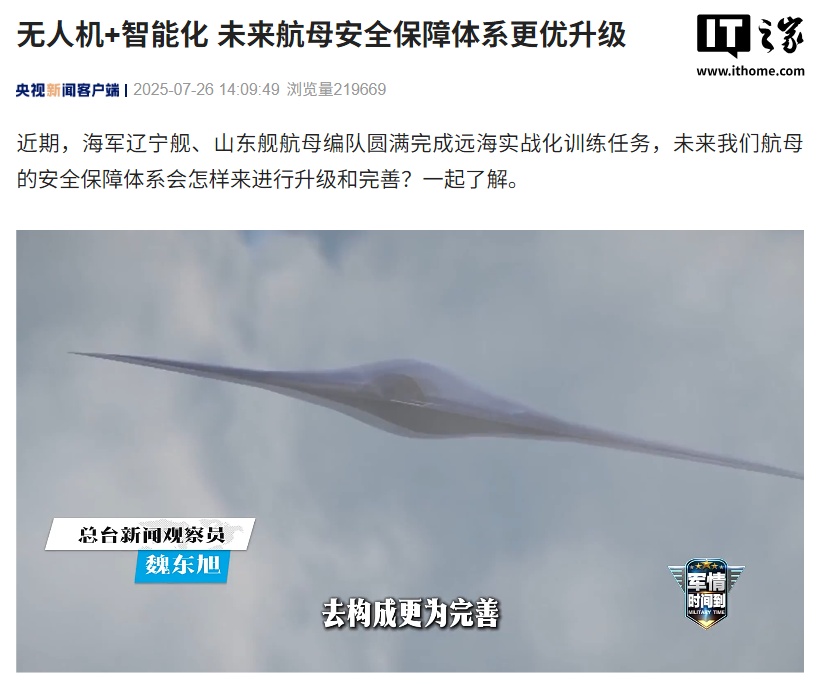 IT之家 7 月 26 日消息,据央视新闻今日报道,我国山东舰航母编队近期圆满完成远海实战化训练任务。山东舰 5 年实现了舰载机的近万架次的安全起降
