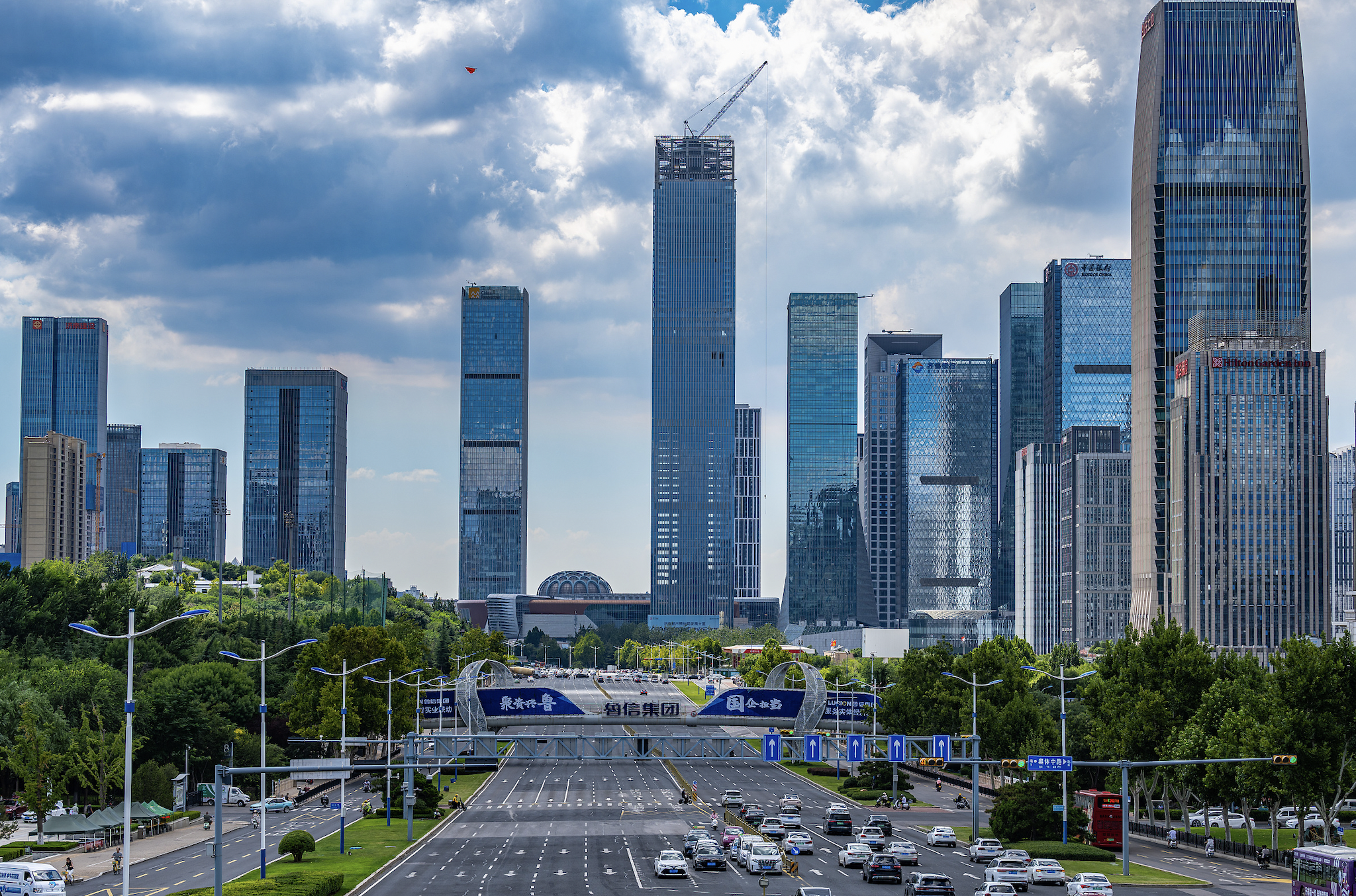 2025年7月27日,济南夏季经十路CBD群楼多云。图片来源:CFP