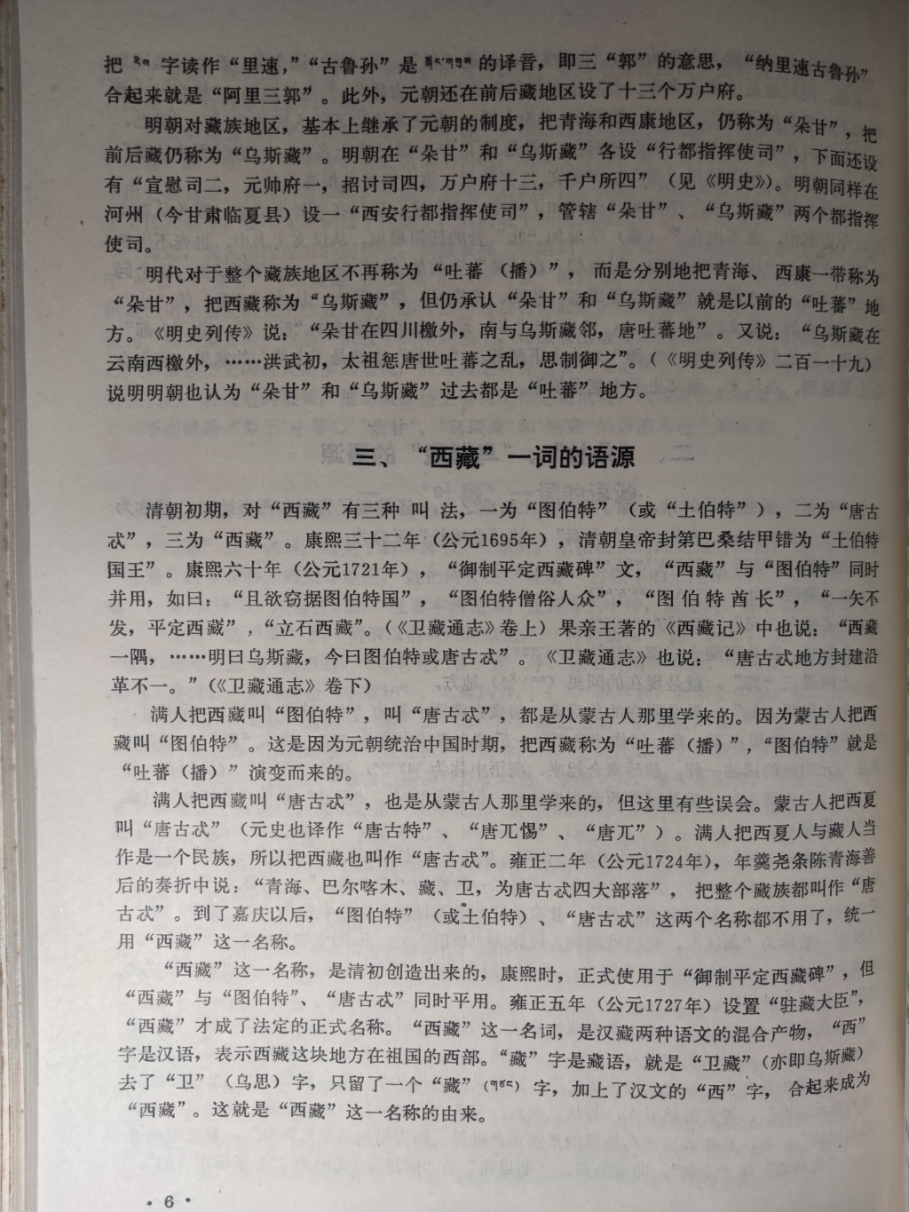 雍正五年(一七二七)设置驻藏大臣,西藏才成为正式名称,嘉庆以后,图伯特、土伯特、唐古忒都不用了,统一用西藏这一名称。