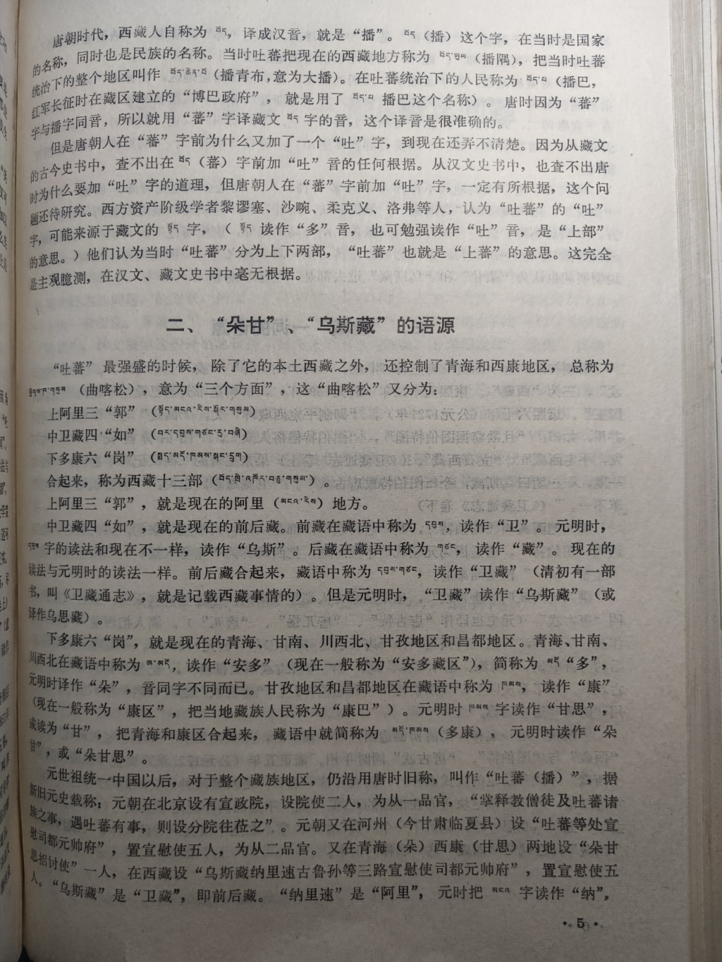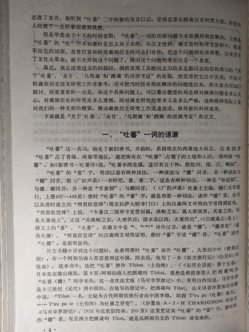 但是毕竟由于十天的时间有限,“吐蕃”一词的语源问题并未能获得彻底解决,主要是“吐蕃”的“吐”字不知唐时是怎么加上去的。从汉文资料、藏文资料和外文资料中,都查不出它的语源。我曾打算和研究藏族历史的同志们合作,把这个问题彻底弄清楚,后来发生了文化大革命,就不允许搞这个问题了,因而这个问题到现在还是一个悬案。