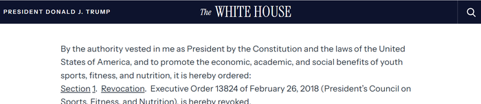 其中第一条备受瞩目:要求在公立学校中重启暂停了13年的总统体能测试。强调通过体能达标给予表彰,但具体实施细则尚未完全公布。