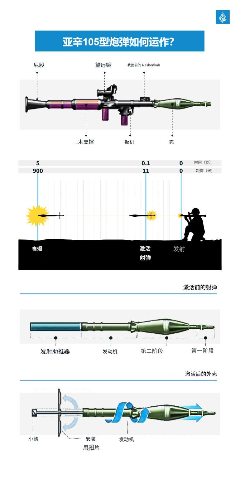 值得注意的是,105毫米亚辛炮弹也发挥着类似的作用,因为它们是专门为坦克战而设计的,而坦克战是以色列地面部队的主要武器。亚辛导弹采用“串联弹头”,即有两级爆炸物。