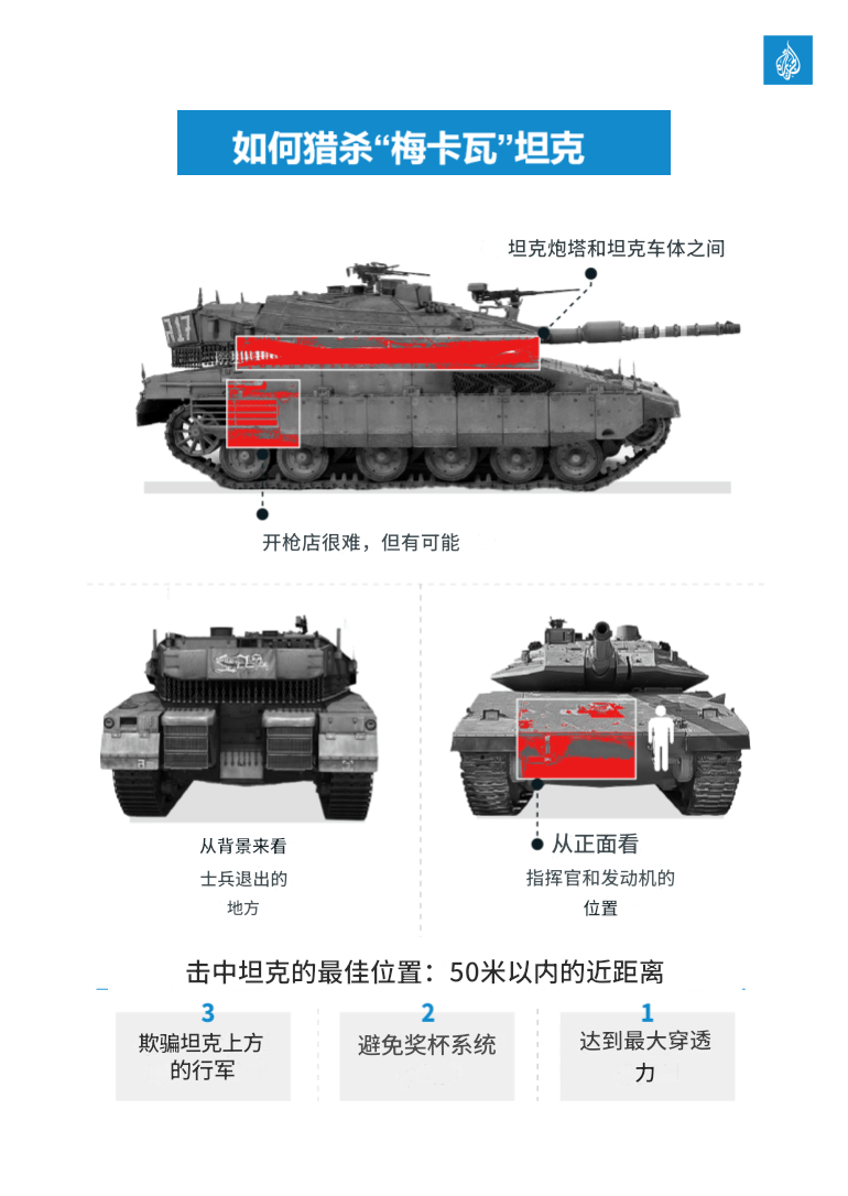 这一发展在卡桑旅基地在整个战争期间播放的视频片段中显而易见,其中主要通过 3 个致命点瞄准坦克: