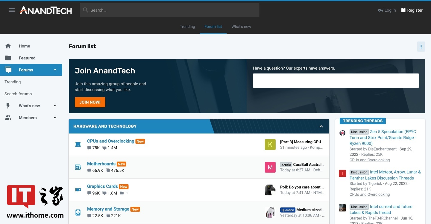 不过根据IT之家和多位网友的测试,在约 11 个月后的现在 AnandTech 的主站 (anandtech.com) 和文章页面已不再可用,均会跳转至目前仍在运行的 AnandTech 论坛 (forums.anandtech.com)。