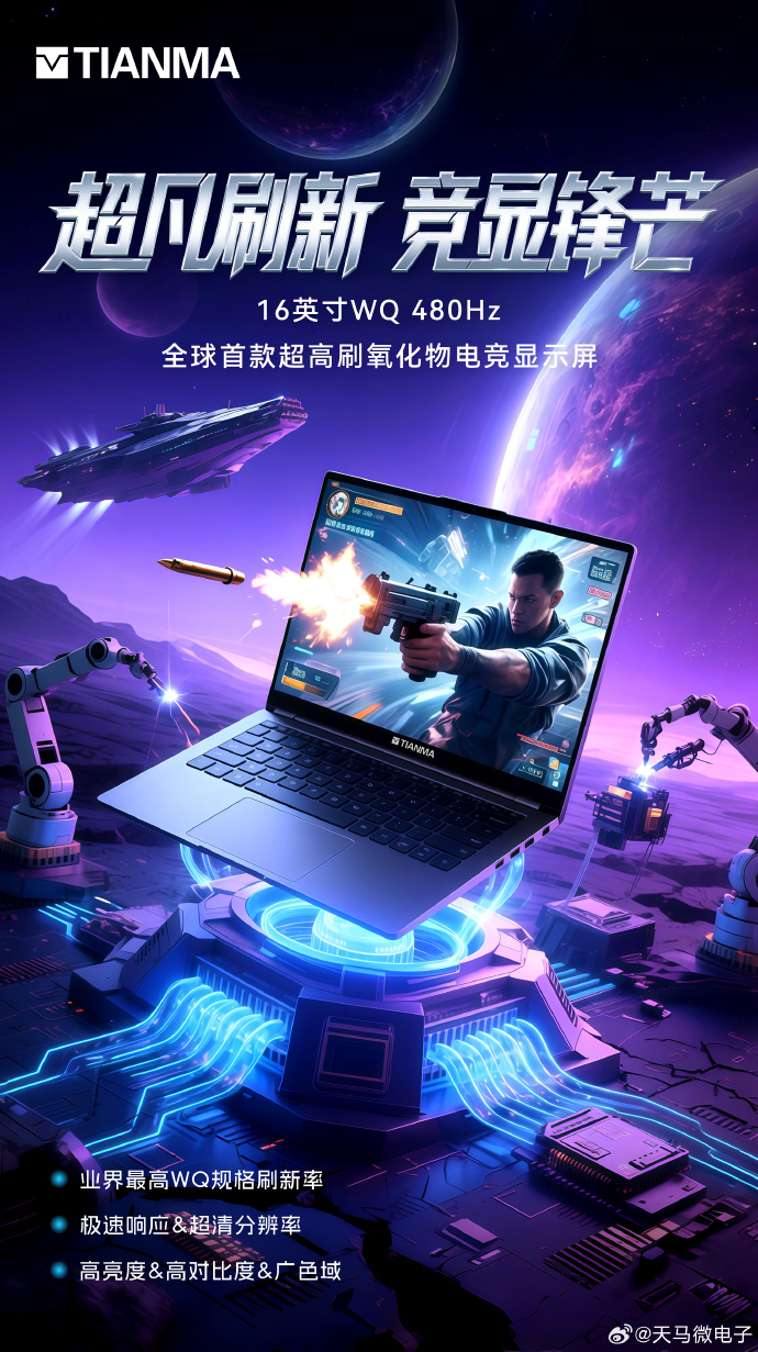 IT之家 8 月 4 日消息,天马微电子发文,宣布推出“全球首款超高刷 480Hz 氧化物电竞显示屏”,预计该显示面板有望近期用于各大品牌旗下电竞本中。