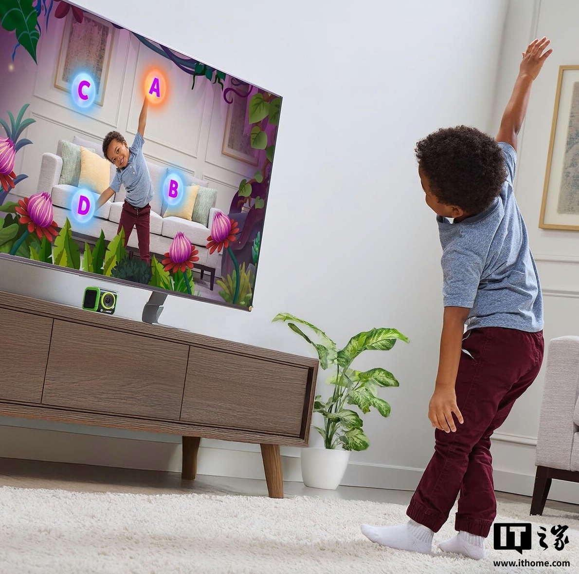 具体来说,该机外观采用“儿童友好”的方块造型,其内置摄像头支持动作识别,运作方式类似当年微软为 Xbox 360 / One 推出的 Kinect 传感器,让孩子通过肢体动作直接与游戏进行互动,同时还支持增强现实功能,也就是利用摄像头捕捉场景,在场景中叠加 AR 元素。