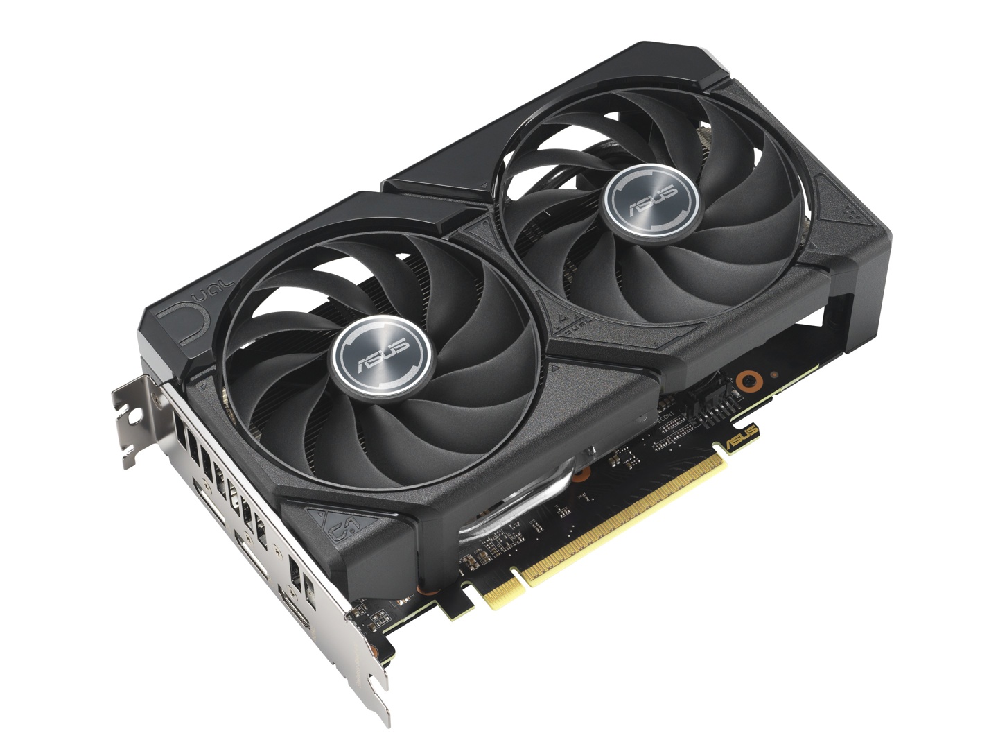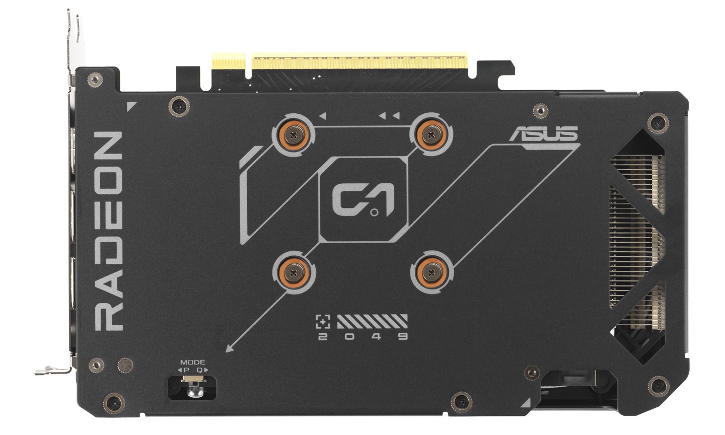 华硕 Dual Radeon RX 9060 8GB GDDR6 显卡采用双风扇散热模组,三维 202×120×49 (mm),厚约 2.5 槽,提供 1 个 HDMI 2.1b 和 2 个 DisplayPort 2.1a 接口。