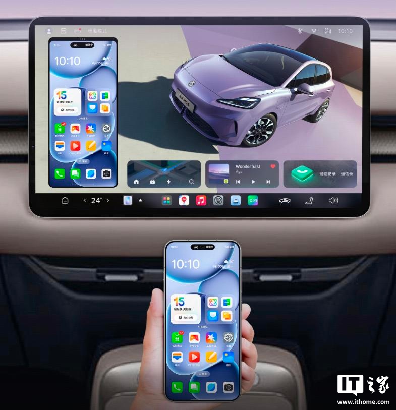 该车提供 15.6 英寸中控,匹配高通骁龙 8155 芯片,搭载基于上汽零束自研架构与 OPPO 生态深度融合的新车机系统,针对手机语音备车、融合桌面、应用接力等功能场景进行创新迭代。此外车辆还将旋钮式换挡机构改为了怀挡式,副仪表台处则增加了 50W 手机无线充电面板。