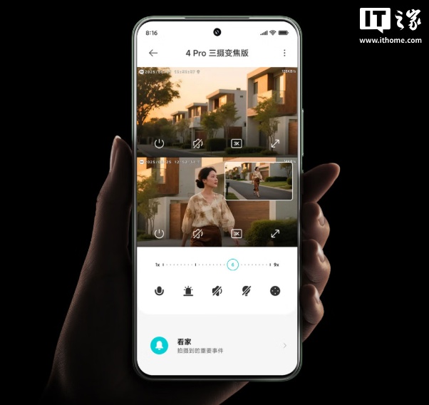 据介绍,新品搭载三枚 500 万像素专业传感器,每颗镜头均可呈现 3K 超清画面,分辨率高达 2880x1620,配合 f/1.6 大光圈镜头。三摄镜头均采用「白光灯 + 红外灯」双补光方案,夜间检测到人形可自动开启补光,全彩画面立现。