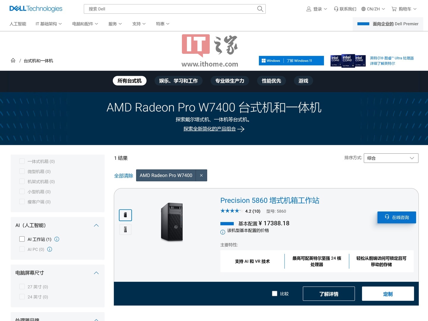 参考外媒 Wccftech 的报道,Radeon PRO W7400 显卡已进入戴尔 PC 的可选配置: