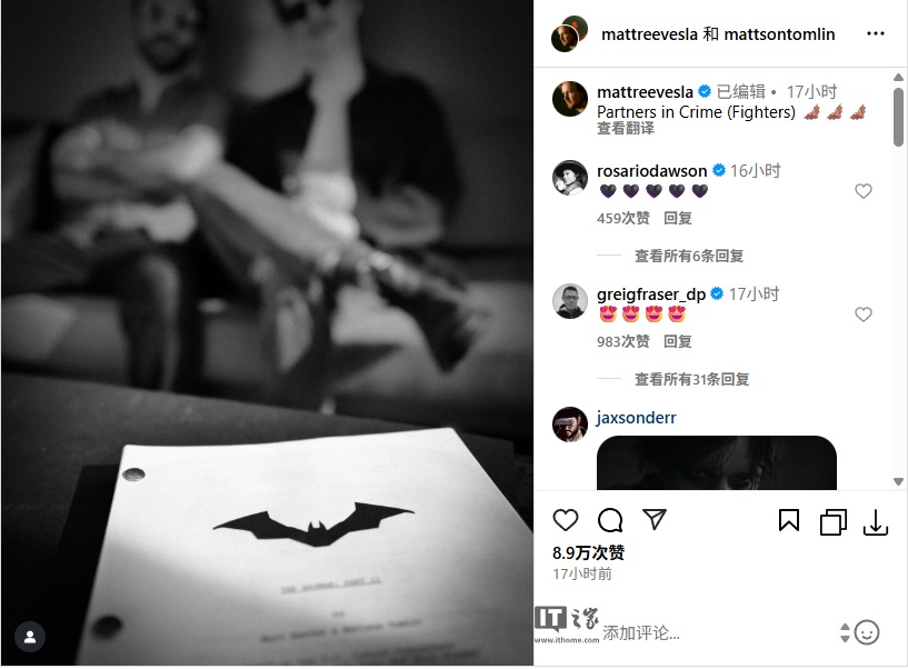 据IT之家此前报道,《新蝙蝠侠 2》已经历数次延期,电影导演马特・里夫斯(Matt Reeves)于今年 6 月宣布其剧本已完成,由他与编剧 Mattson Tomlin 共同完成。