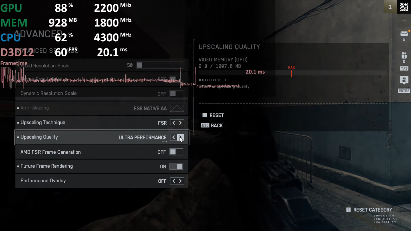 YouTuber @AMD APU Gaming 测试发现,《战地 6》在搭载 Vega 7 核显的 AMD R5 5600G 上测试时,在 1080p 分辨率、低画质、开启 FSR “质量”模式下,帧率可稳定在 45 FPS,最高可达 50 FPS 以上;将 FSR 调整至“极致性能”模式后,帧率稳定在 50 多 FPS;启用帧生成并保持 FSR “质量”模式时,即可实现稳定 60 FPS。